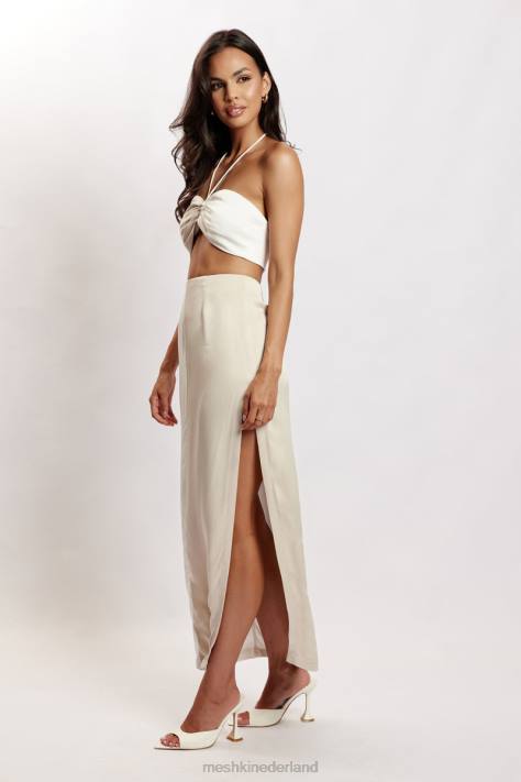 Frankie, Een Chique Update Van Je Klassieke Bandeau, Is Een Prachtige Variant Op Statement-dressing. Ze Heeft Een Hartvormige Halslijn, Wordt Opgehangen Aan Dunne Halterbandjes En Is Voorzien Van Delicate Ruches Middenvoor. Frankie Heeft Een Korter Ontwerp En Is Gemaakt Van Een Lichtgewicht Satijnen Materiaal In Contrasterende Tonale Tinten Voor Een Elegante En Trendy Indruk. Combineer Met Onze Bijpassende Frankie Tweekleurige Satijnen Maxirok Of Kleed Haar Casual Aan Met Meshki-denim.