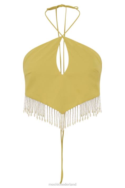 Meshki jayleen keyhole driehoekige haltertop met franjes kleding chartreuse XP0T1135