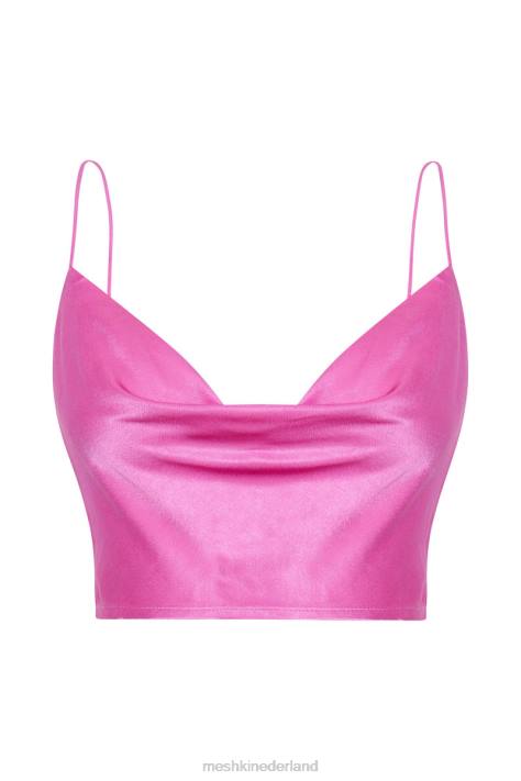 Meshki papaver satijnen top met col kleding roze XP0T1013