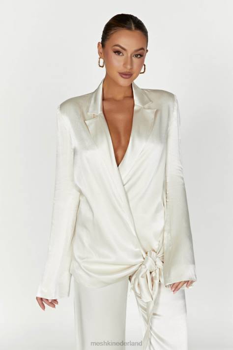 Dit Zelfbindende Satijnen Blazerjack Heeft Een Sexy, Gestructureerd Silhouet. Het Is Een Gevoerde, Iets Oversized Blazer Met Subtiele Schoudervullingen En Lange Mouwen. Het Omwikkelbare Silhouet Zorgt Voor Een Comfortabele, Op Maat Gemaakte Pasvorm. Maak De Look Compleet Met Onze Bijpassende Aspyn Satijnen Broek En Je Favoriete Accessoires.