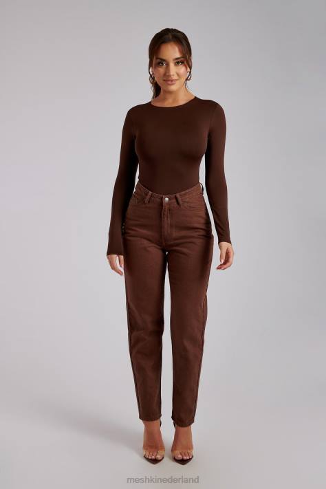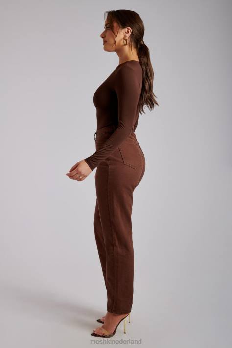 Meshki Millcent effen stijve mom jeans kleding chocolade XP0T1341