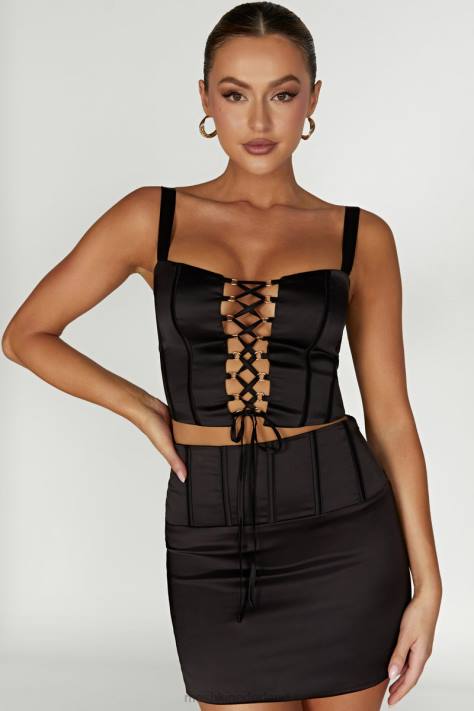 Home| toppen| korset topjes| Meshki scharlaken satijnen korsettopje kleding zwart XP0T971