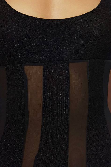 op Het Eerste Gezicht Lijkt Dominique Misschien Bescheiden En Ingetogen. Maar Als Je Wat Beter Kijkt, Zie Je Het Speelse, Flirterige Karakter Erdoorheen Schijnen! Gemaakt Van Een Op Maat Gemaakte Meshki-mix Van Glanzende Jerseystof En Zachte Mesh, Ze Is Anders Dan Alles Wat We Tot Nu Toe Hebben Uitgebracht. Het Hoofdgedeelte Van De Jurk Heeft Afwisselende Panelen Van Ondoorzichtig En Licht Doorschijnend Materiaal. Ze Creëert Een Subtiel Gestructureerd Beeld Dat Subtiel Aantrekkelijk Is, Niet Opzichtig. Slanke, Gekruiste Schouderbandjes En Een Soepele, Naadloze Pasvorm Maken Dominique's Rustige Koninklijke Sfeer Compleet!
