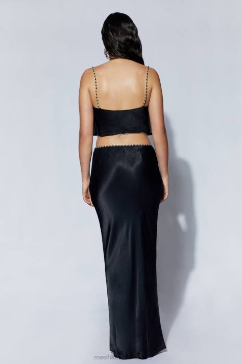 Meshki havva maxi-rok met diamanten afwerking kleding zwart XP0T1466