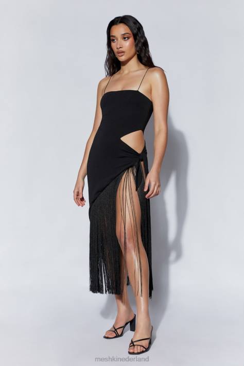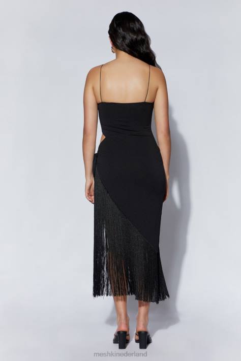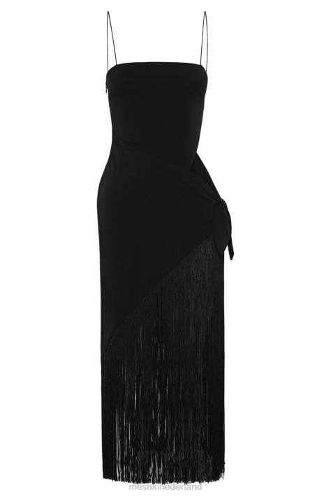 Meshki Yasmin overslag midi-jurk met franjes kleding zwart XP0T625