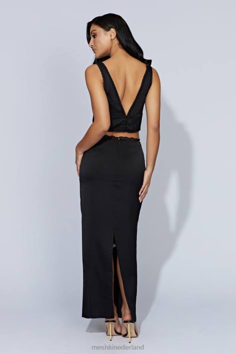 Meshki Midi-rok van monet-gesplitst kant kleding zwart XP0T1552