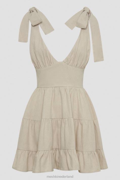 Aurelia Is Een Mouwloze Linnen Midi-jurk Met Een Diepe, Wijde Halslijn, Gelaagde Rok Met Ruches En Brede Schouderbandjes Met Losse Stoffen Strikdetails. Het Lijfje Heeft Een Gladmakend, Nauwsluitend Effect Rond Het Onderlichaam En De Rok Heeft Een Brede, A-lijn Snit Die Tot Iets Boven De Knieën Valt, Waardoor Een Klassiek, Verfijnd Silhouet Ontstaat. Lichte Ruches Rond De Buste En Een Lage, Open Rug Voor Effect. Maak De Look Af Met Chique Sandalen.