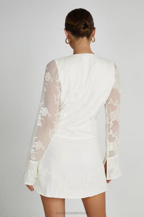 emory Is Een Fluwelen Mini-wikkeljurk Met Een Diepe V-hals, Op Maat Gemaakte Burnout-print En Aansluitende Mouwen Met Uitlopende Manchetten. Het Wikkeldetail Zorgt Voor Een Nauwsluitende Pasvorm, Terwijl De Onzichtbare Ritssluiting Aan De Zijkant En De Polyester Voering Zorgen Voor Maximaal Comfort, Ongeacht Het Tijdstip Van De Dag. De Op Maat Gemaakte Fluwelen Burnout-print Ligt Over De Gladde Meshki-mixstof Op Een Aparte Mesh-laag, Wat Diepte En Visuele Details Toevoegt.