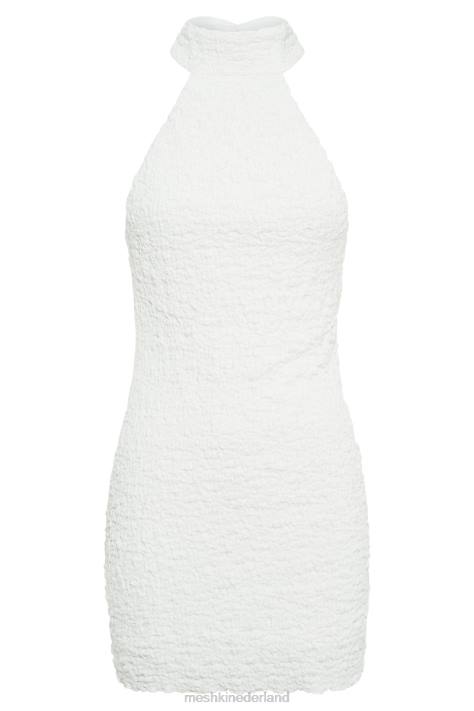 De Yuki Halter Mini-jurk Met Textuur Is Een Klassieke Mini-jurk Met Een Prachtige Hoge Kraag, Halterhalslijn En Verleidelijke Open Achterkant. De Rok Valt Tot Net Rond De Bovenbenen, Waarbij De Taille In Een Lichte Dip Middenachter Glijdt - Een Subtiele Maar Effectieve Snit Die De Ruglijn Verlengt. Een Knoopsluiting Op De Nekband Zorgt Voor Een Flexibele Pasvorm. Combineer Met De Nieuwe Hakken Met Enkelbandjes Om De Look Compleet Te Maken.