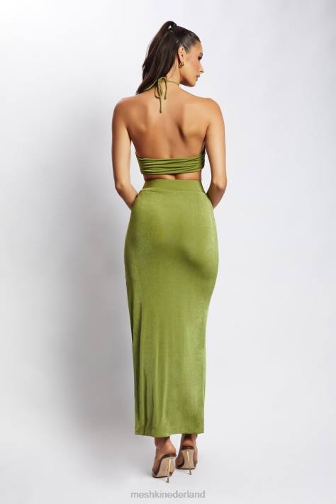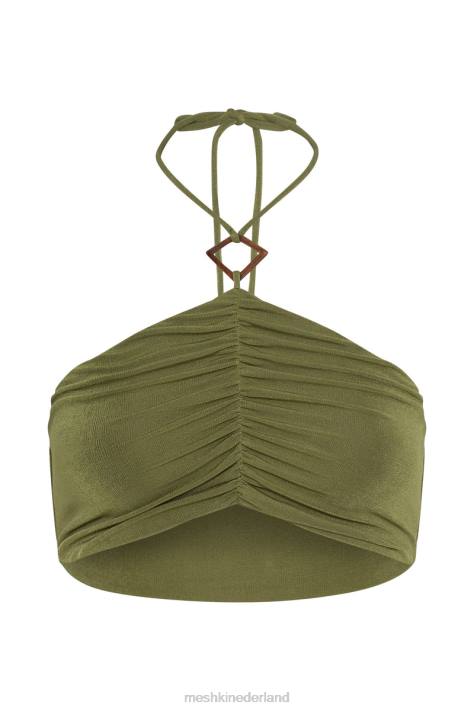 introductie Van De Alizeh Halter Crop Top Met Ruches In Een Frisse Nieuwe Tint. Deze Crop-top In Halterstijl Is Ontworpen Om Gemakkelijk Te Dragen Met Onze Alizeh Maxi-ijsjerseyrok Of Om Te Combineren Met Je Favoriete Meshki-denim. Hij Is Voorzien Van Ruches Middenvoor Om De Buste Te Flatteren En Hardwaredetails Van Schildpadden. Ze Is Getailleerd En Gemaakt Van Een Zachte Jerseystof Die Perfect Op Het Lichaam Aansluit.