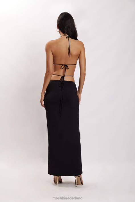 Home| toppen| navel shirt| Meshki amberkleurige halter crop top met ruches kleding zwart XP0T1151