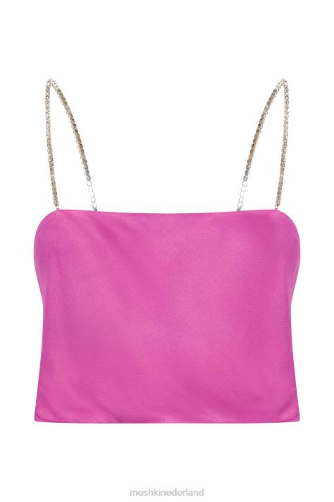 betover Bij Elke Slijtage In De Rechte Crop-top Van Dayana. Dayana Is Gemaakt Van Een Luxe Satijnen Stof En Heeft Een Strak En Klassiek Silhouet, Afgewisseld Met Fijnere Eigentijdse Details - Een Vierkante Halslijn, Dunne Bandjes Met Diamanten Die Bloeien In Het Donker En Een Open Achterkant Met Kettingsluiting Aan De Achterkant. Combineer Met Onze Dayana Maxirok Met Diamanten Om Indruk Te Maken Op Je Volgende Speciale Evenement.