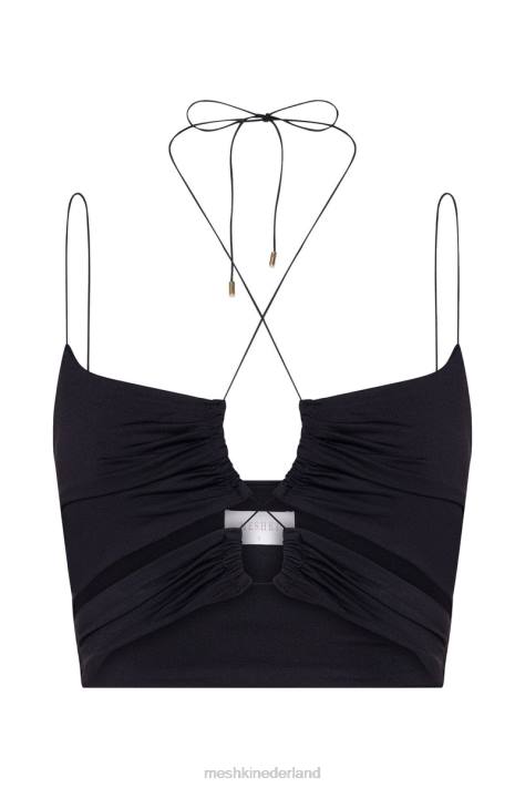Home| toppen| navel shirt| Meshki Phoenix uitgesneden crop top met ruches kleding zwart XP0T1174