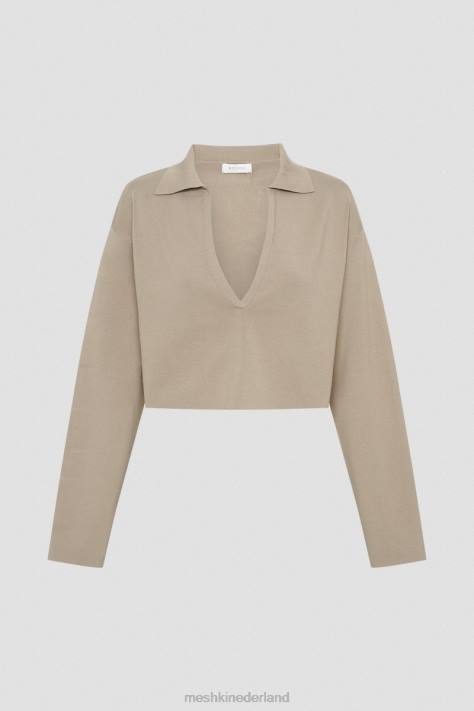 Meshki Lennox gebreide trui met kraag kleding taupe XP0T893